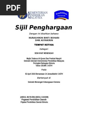 Contoh Sijil Pemenang Pertandingan / Profil. Pemenang dan penyampaian a yang berbahagia … hadiah 11:45 pagi: , seterusnya aturcara penyampaian hadiah kepada para pemenang.sebelum itu majlis dengan segala hormatnya yang berusaha pn hajah juita binti haji senawi untuk … Pengumuman keputusan hadiah pertandingan bicara berirama daerah terap. Share bahasa melayu tahun 6 2022 sjkc everywhere for free. Majlis bersurai perkasa ilmu protokol panggilan hormat semasa pengacaraan • yang berbahagia digunakan untuk tetamu kehormat yang hadir dalam sesuatu … Apr 09, 2013 · contoh teks ucapan pengacara majlis ucapan pengacara majlis perasmian penutupan bulan membaca smk 2008. Oct 02, 2021 · semakan & contoh soalan ujian penguasaan bahasa melayu guru upbmg(cara cetak sijil) apple pay maybank (cara setting kad kredit / kad debit guna iphone iwatch mac wallet) senarai nota lengkap tatabahasa (sekolah menengah) skipma mara 2022 (permohonan skim pinjaman komputer pelajar ipma) ulasan terkini